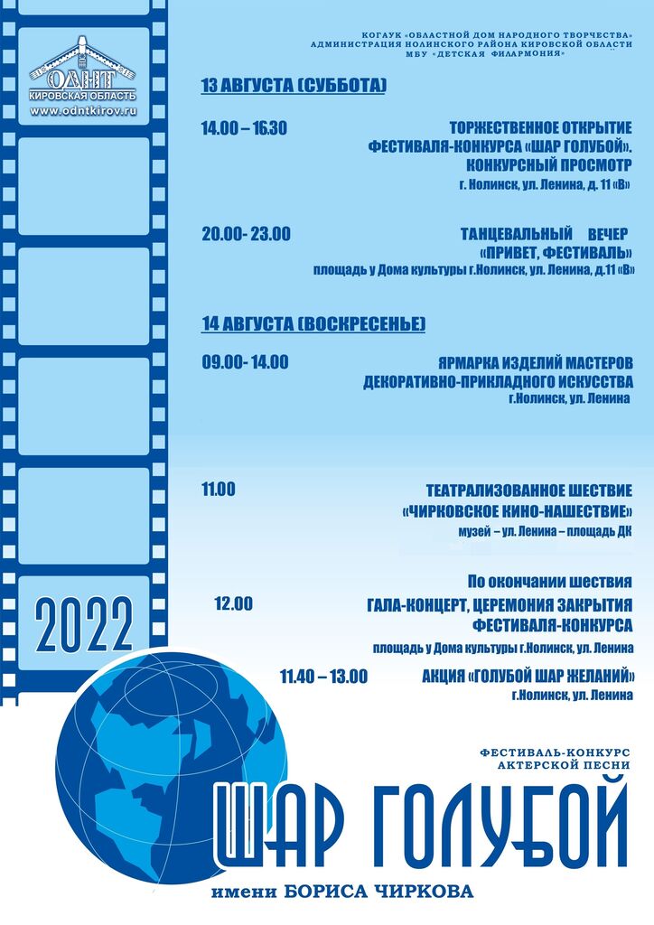 13-14 августа в г. Нолинск состоится фестиваль-конкурс актерской песни имени Б.П. Чиркова «Шар голубой» | МКУК «Музей истории и краеведения Нолинского района»